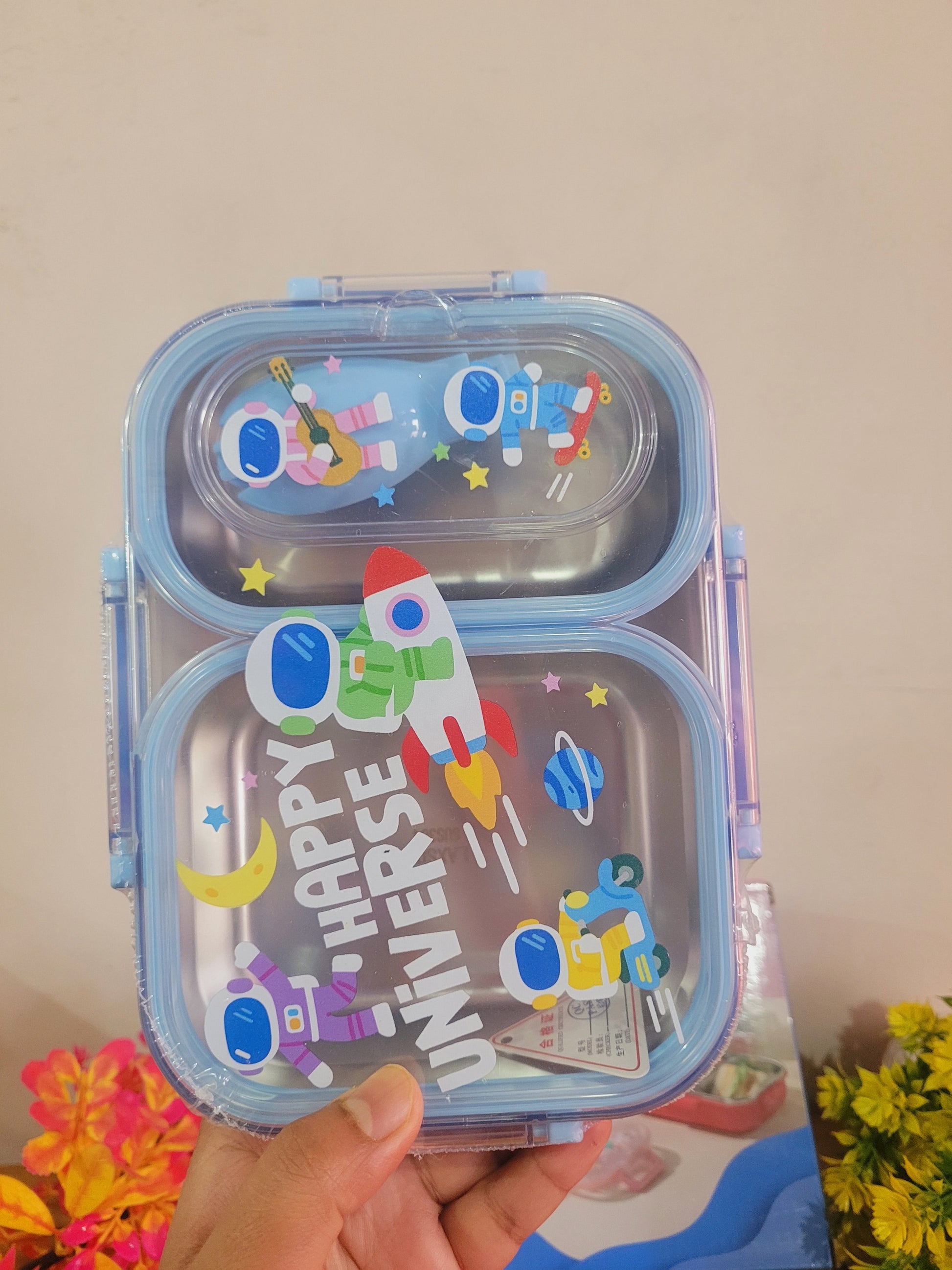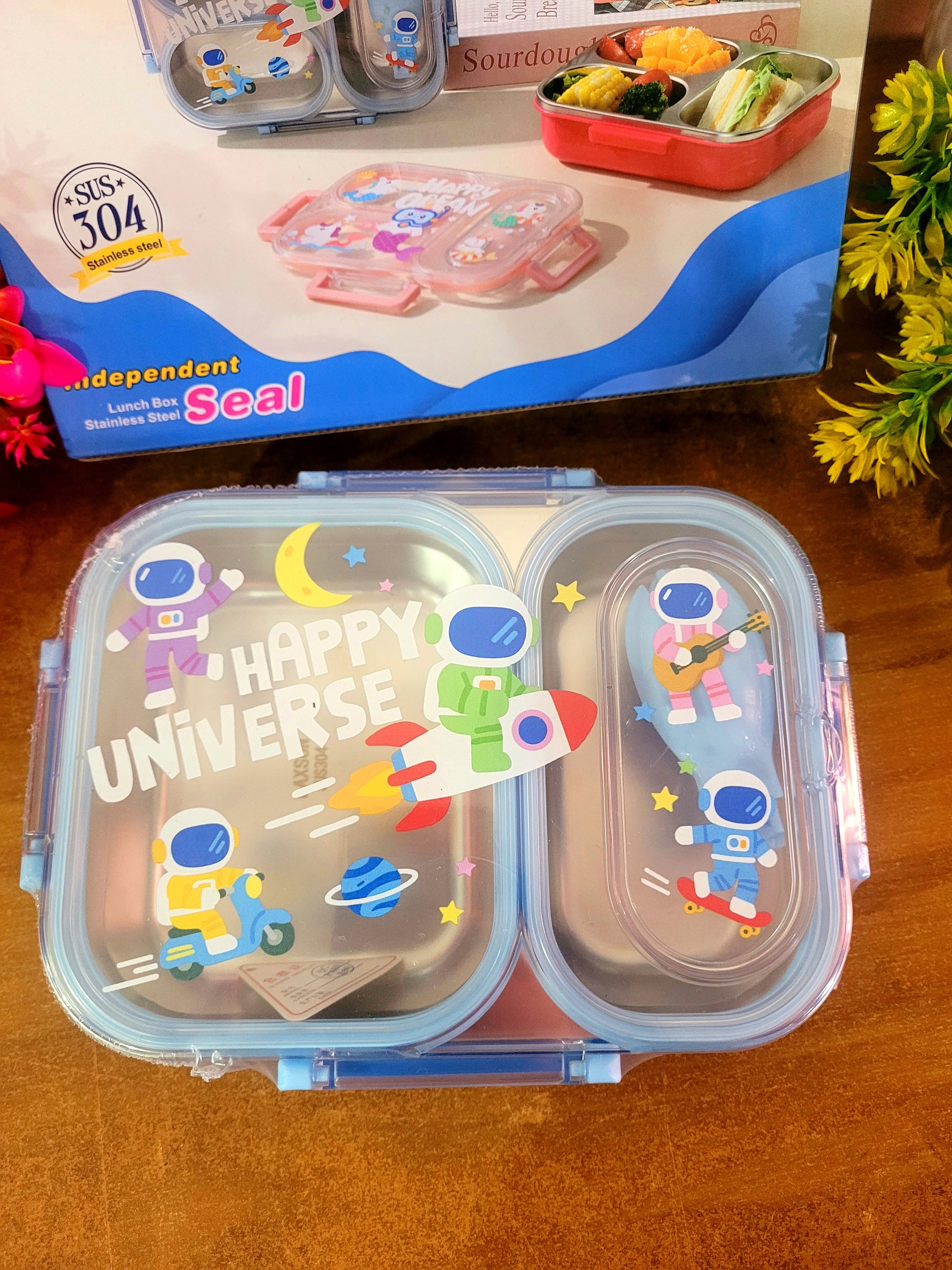 Astronaut Stainless Steel 2 Grid Lunch Box-600ML+1Spoon